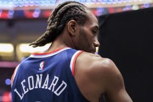 记者:“没错。就像是说‘好了,你的提问到此为止‘’。然后话筒给到了一位跟队记者,一位电视台的跟队记者,他问了关于休赛期保持健康的问题。接着下一位提问的是球队电台的记者,他又问了一个更偏向篮球技术的问题。之后我记得是TA的记者接过了提问,他问了个关于Aspiration赞助商的问题,但问的是如何避免让其成为干扰因素之类的,而莱昂纳德的回答也是敷衍了事。”